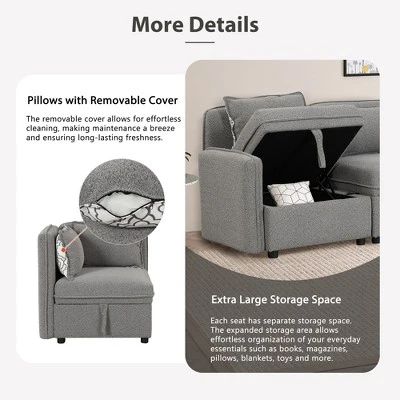 122.8″ Minimalist Convertible Modular Sofa, Upholstered Sectional Sofa Couch With 5 Pillows-ModernLuxe