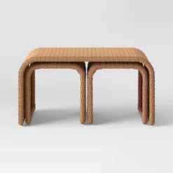 Create a breezy look in your patio with this Purcell Light Wood Patio Seating Set from Project 62™. This outdoor seating set features club chairs, loveseat and a round table to offer ample space to enjoy meals and drinks with friends or family. The black woven design on the seat back looks elegant with the brown metal frame, helping you create a cohesive look with the brown coffee table. Add this light wood seating set in your patio or backyard to create a welcoming oasis in your space.