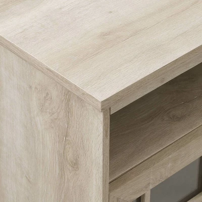 Take a look inside this 58″ Transitional 4-Door Windowpane TV Stand by Saracina Home. The timeless console boasts two sets of double doors with tempered safety glass windowpane fronts to frame your impressive collection of movies and media components. Two adjustable shelves and cord management ports ensure that the unit will remain peerlessly organized. If you see yourself using this unit as a sophisticated buffet in the kitchen, you can nestle your finest place settings in the tall design’s two upper shelves.
